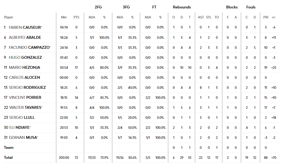 Estrella Roja 58 – 72 Real Madrid