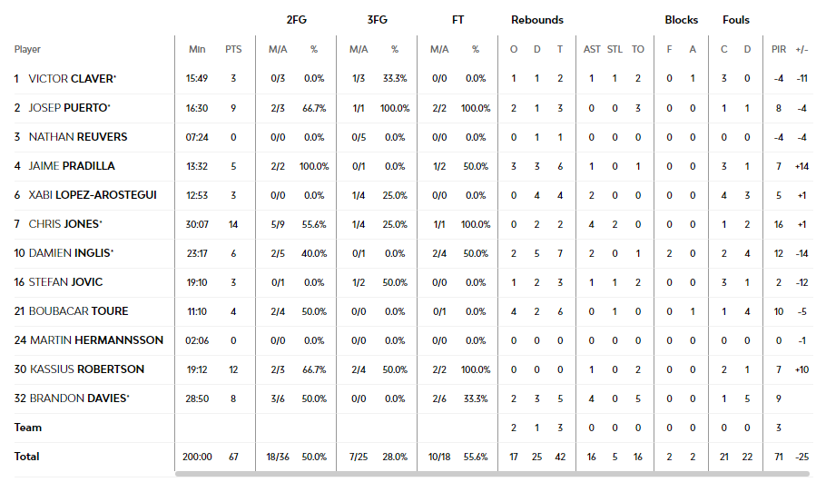 Brandon Davies apunta a ser uno de los jugadores más fichados esta próxima jornada recibiendo en casa al Covirán Granada y después de haber mantenido una semana más sus buenos números en valoración. Sin embargo, otro interior del conjunto taronja que no viene luciendo nada mal es Damien Inglis que si bien no destacó la semana pasada (se quedó en un 9+) sí que ha tenido partidos destacados como el 29 en casa del Baskonia o el 28+ ante UCAM Murcia en el último mes. Podría ser partido para él buscando cargar el juego en el puesto de ala-pívot y contando con la baja de Ojeley.