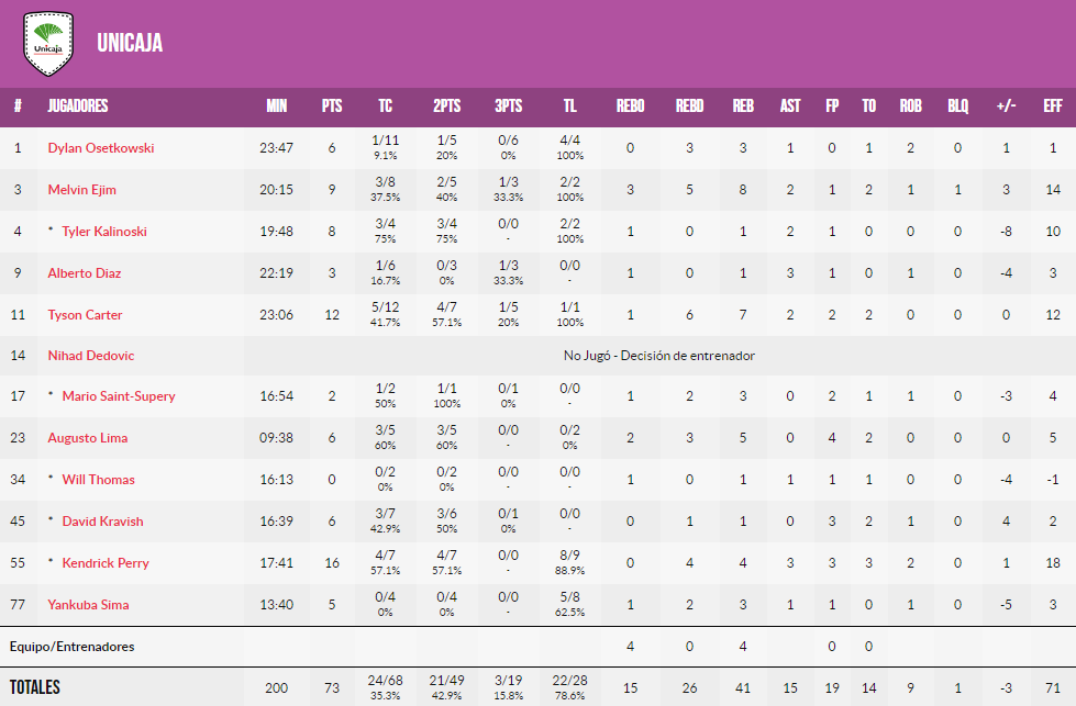 Peristeri 76 – 73 Unicaja Málaga